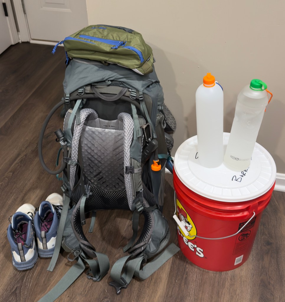 Over the last eight weeks, I’ve gone from “throw a snack in a daypack” hiker to “please don’t let this weigh more than a small child” weekend backpacker. I’ve bought all the gear I think I need to hike 25–40 miles each weekend I’m on trail, and I’m sure the trail will be happy to prove me wrong. I’ll do a full rundown of my setup after Section 1 so I can talk honestly about what worked, what flopped, and what I swore I’d never carry again but somehow will. One of the best perks in these first three months is the 5 lb “drop bucket” for our heavy winter gear. That’s an absolute lifesaver—for us newbies and, honestly, for anyone who doesn’t want to haul winter “worry”.